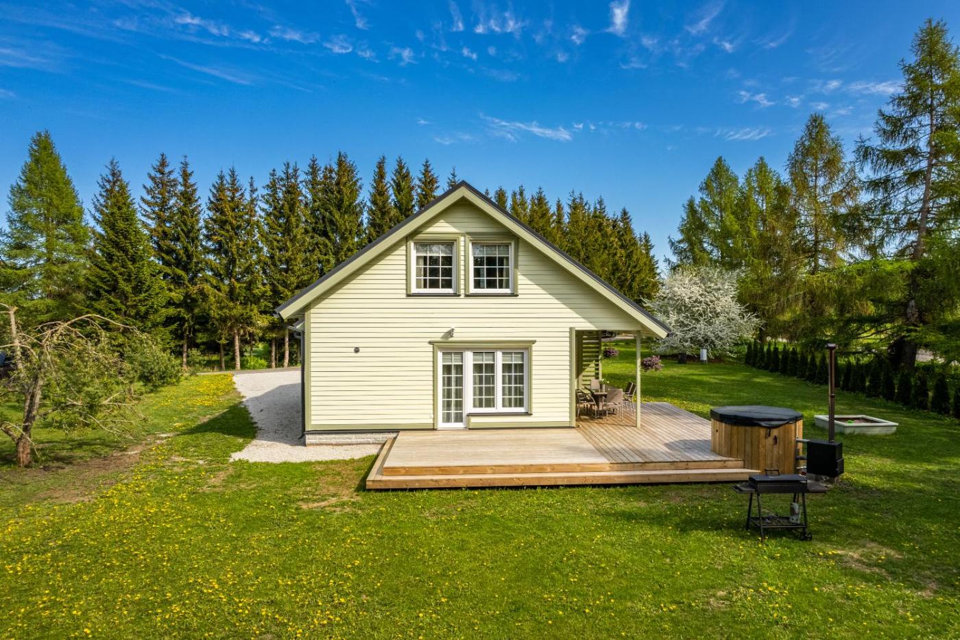 Two-Bedroom House. Guests will have a special experience as the holiday home offers a sauna. Featuring a private entrance, this air-conditioned holiday home consists of 1 living room, 2 separate bedrooms and 1 bathroom with a walk-in shower and a hairdryer. Guests will find a stovetop, a refrigerator, a dishwasher and kitchenware in the kitchenette. The holiday home also offers a barbecue. Boasting a terrace with garden views, this holiday home also provides a coffee machine and a flat-screen TV with cable channels. The unit offers 3 beds.